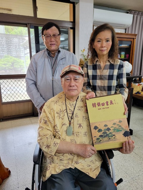 兩岸揚名國畫大師韓錦田去年辭世,他和台灣洪園博物館洪錫銘舘長摰交已經30多年。今天(四月一日)上午洪館長和台灣新國際創新交流協會理事長周正堂博士、監事張司佑一起前往新竹探望韓夫人及大公子韓眺柏。
