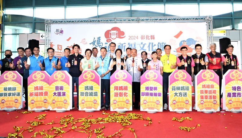 「2024彰化縣媽祖祈福文化節」 13尊媽祖齊聚員林福寧宮 歡迎來拜媽祖遊彰化「2024彰化縣媽祖祈福文化節」由員林福寧宮擔任爐主,今(11)日上午在員林火車站大廳舉辦活動宣傳記者會,彰化縣長王惠美與爐主宮員林福寧宮主委林献鐘及12間宮廟主委、員林市長游振雄等,共同宣告活動即將展開。