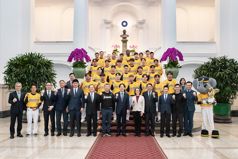 中信兄弟球隊包括教練、球員、職員及Passion Sisters等一行由中國信託慈善基金會董事辜昱銓、中國信託育樂股份有限公司董事長陳國恩及領隊劉志威率領,教育部次長張廖萬堅、中華職業棒球大聯盟會長蔡其昌、秘書長楊清瓏陪同,前來總統府晉見總統,總統府秘書長潘孟安、副秘書長何志偉也在座。