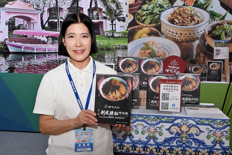 理想大地 陳美玲經理 特別推薦經典的伴手禮「馬告剝皮辣椒牛肉麵」,嚴選上等牛肉歡迎選購