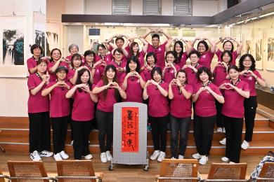 「墨器十足~徐細芳彩墨師生聯展」彰化市立圖書館開幕 徐細芳老師與學員大合照(圖/張玉泰攝)