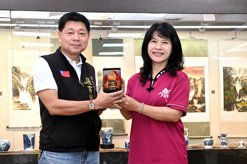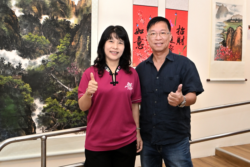 「墨器十足」徐細芳師生展 縣議員張育彬、徐細芳老師(圖/張玉泰攝)