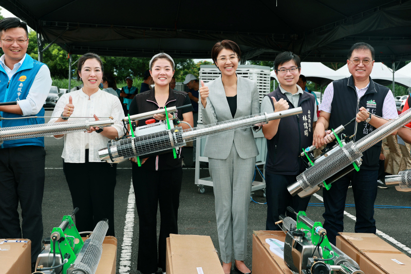 114年低碳環保清運車輛及機具授贈儀式,如一場「環保裝備大閱兵」,縣府新購16輛垃圾清運車及資源回收車、2台清溝車、2台挖土機、1台抓斗車、1台鏟裝機及26台熱煙霧消毒機,排列整齊,經「校閱」後,隨即撥交給13鄉市。