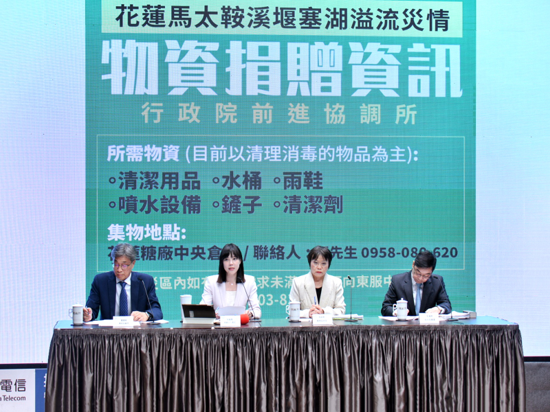 衛生福利部啟動財團法人賑災基金會公益募款「0923花蓮馬太鞍溪堰塞湖災害募款專案」,該專戶已於今日上午開始接受捐款。卓榮泰院長與鄭麗君副院長、張惇涵秘書長將捐出一個月薪資所得,至盼發揮災害救助精神,結合國內外民間力量,共同協助災區復原。