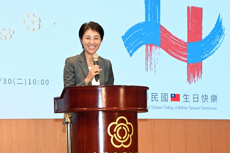 院長提及,國慶活動是大家記憶中,除了過年春節以外,印象是最鮮明、最熱鬧、最喜悅的年度盛典。身為中華民國國民,看到大街小巷的國旗飄揚,像是自己家裡辦喜事一樣。國慶大會中儀隊及國軍弟兄姊妹、各界學生、團體帶來的精采表演,成為多元繽紛的「國慶嘉年華」。搭配今年在台中舉辦精彩的國慶晚會及南投震撼人心的國慶焰火表演。這些美好成果,是我們獻給國家最誠摯的謝禮與敬意。而今年國慶主視覺雙十圖案,表現的是向歷史致敬、對未來祝福的設計,他相信大家看到這樣的設計,可以再度勾起並延續過往國慶日家家戶戶懸掛國旗、迎接國家生日的傳統之情。