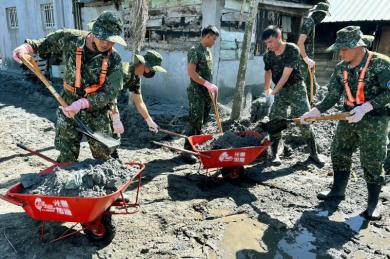 今日為增派兵力投入的首日,烈陽炙烤大地,卻絲毫未能動搖官兵決心,弟兄姊妹除揮汗鏟除淤泥、清理廢棄物,更用心傾聽災民需求,與地方居民攜手並肩,發揮「軍民一家親」的深厚情誼,使疲憊的身影依舊帶著堅毅與溫暖。