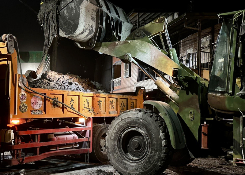 此外,第5作戰區五二工兵群亦連夜運用重型機具,爭分奪秒投入搶修,並與民間企業共同運用機具協力作業,在黑夜中點亮希望之光,將「軍民齊心、攜手合作」的精神展露無疑。