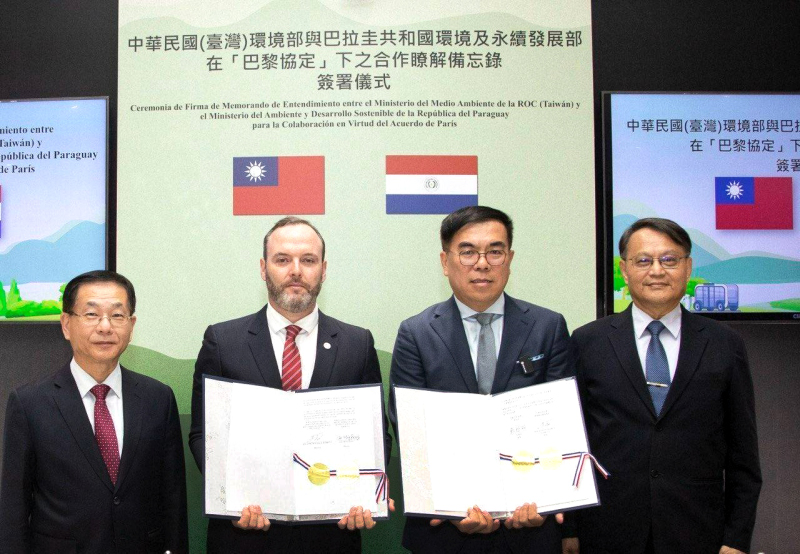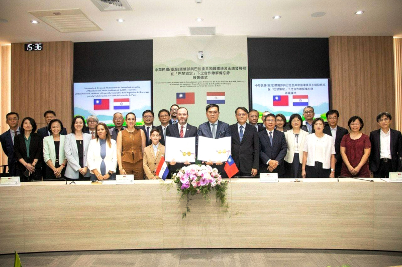 經外交部與環境部攜手合作,以及我國駐巴拉圭大使館促成,巴雷多部長訪台期間與環境部長彭啓明簽署「在『巴黎協定』下之合作瞭解備忘錄」(碳權合作備忘錄),外交部常務次長葛葆萱、環境部政務次長謝燕儒與企業代表均出席觀禮,見證台巴承諾合作達致淨零排放與推動綠色經濟的重要時刻。