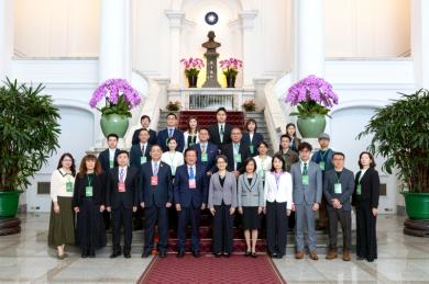 蕭美琴副總統今(28)日接見「中華民國優良商人、優良外國駐臺商務單位、優良外商、優良老店暨菁英老店當選人」時表示,政府會持續支持臺灣各行各業,除推動「AI新十大建設」、「雙軸轉型」政策,亦已提出一系列措施來協助產業因應關稅挑戰。期盼共同努力,讓臺灣產業與品牌在變動的國際局勢中持續穩健發展,一起提升臺灣商業環境。