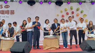 「2025台灣咖啡節」1日於雲林古坑綠色隧道盛大開幕。活動現場集結雲林縣在地咖啡業者及全台喜愛咖啡的民眾共襄盛舉。雲林縣長張麗善、雲林縣副縣長謝淑亞、立委張嘉郡、連江縣副縣長陳冠人、古坑鄉長林慧如、日本長野縣議員暨馬尼拉經濟文化辦事處台中分處長等眾多貴賓齊聚古坑綠色隧道,再現意義十足的炒豆儀式。隨著咖啡豆香氣四溢,整個綠色隧道瀰漫著濃厚的咖啡香,為台灣咖啡節正式揭開序幕,也展現雲林咖啡深厚的文化底蘊與在地魅力。