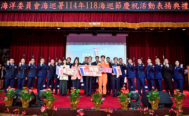 行政院長卓榮泰(5)日出席「114年118海巡節慶祝活動表揚典禮」時表示,今日共計18名模範海巡人員、7個模範海巡單位、5名服務績優海巡志工,以及9名搜救英雄獲獎,他要致予最高敬意與感謝。每位得獎人背後都有令人感佩的故事,不僅代表團隊合作的精神,更指引未來海巡工作更進步的方向,促使國家訓練更多海巡人員、充實更多裝備,讓各項任務執行更加完善。卓院長提到,今日特別邀請游泳健將「蝶王」王冠閎擔任「海巡形象大使」,期盼藉由其正面社會形象及金牌光芒,以及所有海巡尖兵的共同努力下,繼續擦亮「海巡」這塊招牌。