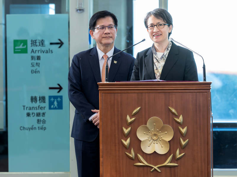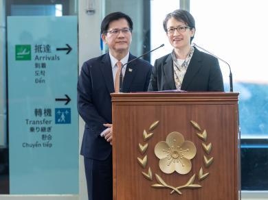 蕭美琴副總統奉賴清德總統指派,應邀赴歐洲出席「對中政策跨國議會聯盟」(IPAC)布魯塞爾年會演講,在外交部部長林佳龍陪同下,於今(9)日上午結束行程返抵國門,並在桃園機場發表談話,說明此行以「臺灣:動盪世界中值得信賴的夥伴」為題發表演說,期待國際社會對臺灣有進一步的理解與支持,並呼籲各國深化與臺灣的經貿與科技合作、支持臺灣國際參與,共同維護臺海和平與區域穩定。