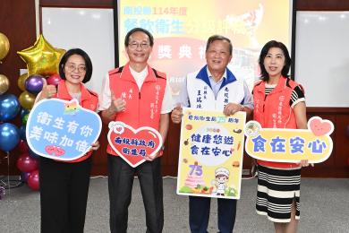吃的安全,食在安心,南投縣政府衛生局今(10)日在衛生局舉辦 114年「餐飲業衛生管理分級評核」頒獎典禮,由副縣長王瑞德頒獎表揚59家通過評核的優質業者,除肯定業者對本縣餐飲衛生安全的努力及付出,也呼籲縣內業者一同為食安努力,提供遊客來觀光首都更好的美食體驗。