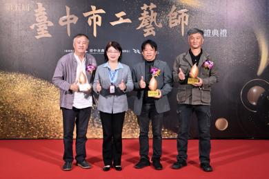 台中市政府文化局今(27)日舉行授證典禮,由局長陳佳君親自頒授證書,肯定三位工藝師在創作、傳承與創新上的卓越成就。獲獎者除可獲得新臺幣25萬元獎金外,未來也將進駐港區藝術中心,讓市民能近距離欣賞工藝技法之美,體驗傳統工藝的當代魅力。