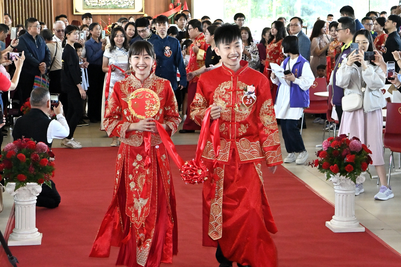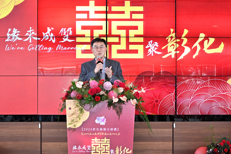 2025彰化縣聯合婚禮活動以中式婚禮為主題,今(29)日在永靖鄉成美文化園盛大舉行,彰化縣長王惠美為42對新人證婚,在所有貴賓及親友的見證下,為新人的愛情獻上祝福,在這個大喜的日子,祝福所有才子佳人,雙雙對對、萬年富貴、早生貴子,永浴愛河、百年好合,縣府也推出許多政策希望讓彰化年輕朋友,安心生、放心養,幸福滿滿。