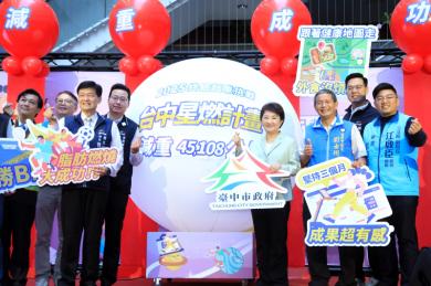 台中市政府衛生局今(5)日舉辦「2025台中星燃計畫:終結超重挑戰」成果表揚記者會,宣布為期三個月的大型健康競賽圓滿落幕。市長盧秀燕出席嘉勉表示,星燃計畫源自她看見許多市民努力減肥卻常覺得孤單,因此市府推出專業陪伴與科學方法,邀請大家一起變健康。活動共吸引27,786人報名,等於每100位市民就有1位響應,最終超過8,000人成功達標,累計甩肉4.5萬公斤,展現市民追求健康的驚人行動力。
