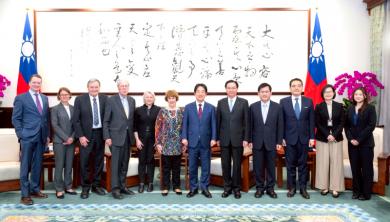 訪團成員尚包括美國外交政策全國委員會亞太安全論壇計畫主任董雲裳(Susan A. Thornton)、史汀生研究中心特聘資深研究員艾江山(Karl Winfrid Eikenberry)及太平洋世紀研究所所長薄瑞光(Raymond F. Burghardt)等,由外交部長林佳龍陪同,前來總統府晉見總統,國家安全會議秘書長吳釗燮也在座。