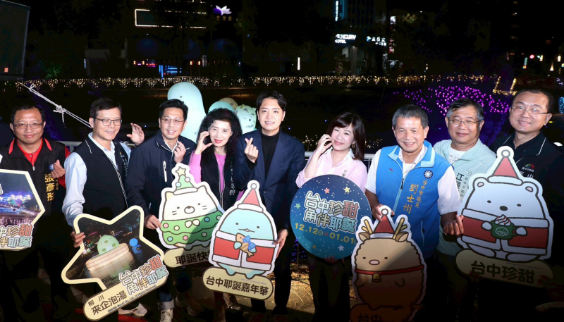 柳川沿岸同步設置多處大型角色燈飾,如「來企泡湯」、「白熊好品」及民權路「炸物食堂」,增添趣味看點。舊台中火車站前廣場設有耶誕市集,每日 40 個攤位,週末並安排藝文表演與視障按摩免費體驗。
