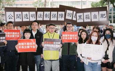 抗議助理費除罪化,國會助理集結立院門口要求撤回法案。