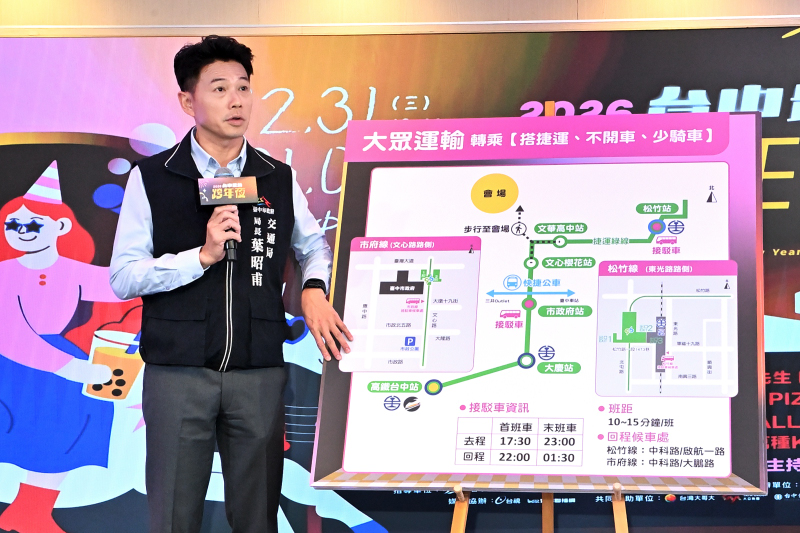 欒局長強調,台中跨年不只是一場演唱會,更是一趟完整的城市體驗。市府規劃「文化×美食×跨年」一站式動線,白天可走訪新開幕的「綠美圖」感受城市文化新地標,傍晚前往逢甲商圈品嚐特色美食,夜晚再到水湳中央公園倒數迎新年,一次感受台中的文化、觀光與音樂魅力。