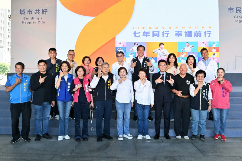 台中市長盧秀燕率領市府團隊執政滿7年,即將邁向第8年,今(24)日舉行施政7週年成果記者會,以「七年同行、幸福前行」為主軸,向市民報告7年來的施政成果。