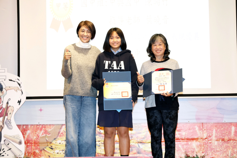 在分享會中,指導學生廖綝恩榮獲特優的張春美老師分享:「流淚撒種的,必歡呼收割!」她表示,綝恩展現了驚人毅力,而縣府辦理的七次集訓期間,孩子心無旁騖的投入,更是成功的關鍵。