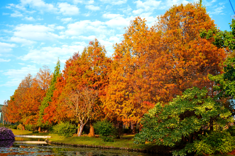成美文化園落羽松轉紅 浪漫季節美景 親子同遊一次滿足