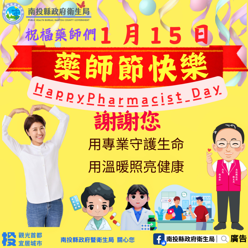 1月15日是藥師節,南投縣在藥事服務方面成果顯著,南投縣藥師公會及多位藥師榮獲衛生福利部食品藥物管理署「藥事照護服務」表揚肯定,其中南投縣藥師公會獲頒「113年度建立社區藥局藥事支持服務計畫」有功團體殊榮,另有4位藥師榮獲「114年藥師照護優良藥師」及「特優藥師」,展現南投藥師在基層照護的專業實力,為縣爭光。