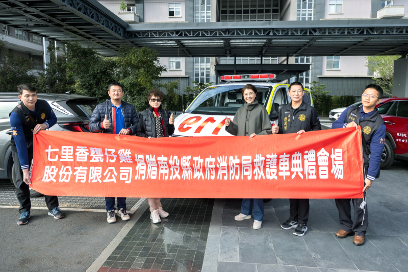 為協助提升南投縣緊急醫療救護及災害現場指揮效能,在地企業「七里香甕仔雞股份有限公司」及社會賢達張振科,分別捐贈平頂救護車及救災指揮車各1輛。23日上午舉行捐贈儀式,縣長許淑華代表受贈並致贈感謝狀及紀念小車,她開玩笑說是以「小車」換「大車」,也換到守護南投縣民最堅實的後盾,感謝這份來自民間的溫暖力量。