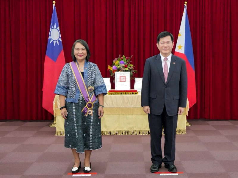 外交部長林佳龍贈勳馬尼拉經濟文化辦事處駐台代表葛若菲 表彰台菲合作的貢獻