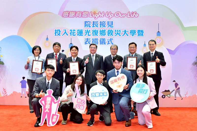 行政院長卓榮泰(26)日接見投入花蓮光復鄉救災大學暨表揚儀式「感謝有您·Light Up Our Life」。院長感謝去(114)年9月全臺30所大學師生化身「鏟子超人」,投入馬太鞍溪堰塞湖災後復原,也肯定季連成政務委員於災後駐點花蓮24天,協助整合資源,使50萬人次師生與志工得以順利進入災區投入重建。卓院長並向長期支持教育的5家民間基金會致敬,強調投資年輕人就是投資國家的未來;投資下一代,就是投資國家未來的希望。未來政府將持續在協助青年的政策上努力,讓這50萬人次「鏟子超人」化為希望種子,在花蓮生根、走向全世界,政府為青年鋪路,青年為臺灣加油。