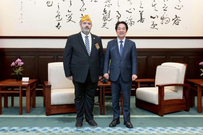 賴清德總統接見美國退伍軍人協會席普利(Paul Shipley)總會長,感謝該協會長期支持臺美交流與退伍軍人事務。並表示,近來美國政府和國會完成《台灣保證落實法案》的立法,為臺美關係的穩健發展提供重要支持,期盼未來持續深化合作,共同提升退伍軍人照顧與服務品質。