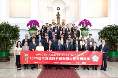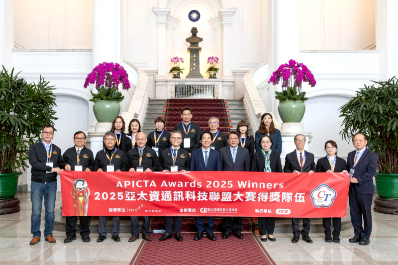 賴清德總統(2)日上午接見亞太資通訊科技聯盟大賽APICTA Awards 2025獲獎代表隊時表示,臺灣於去年賽事勇奪10金、8銀、6銅,成績亮眼並刷新大會紀錄,展現我國資通訊研發與創新實力;政府將持續作為堅實後盾,期盼未來與各界攜手,為臺灣及印太區域打造更智慧、美好且具包容性的數位未來。