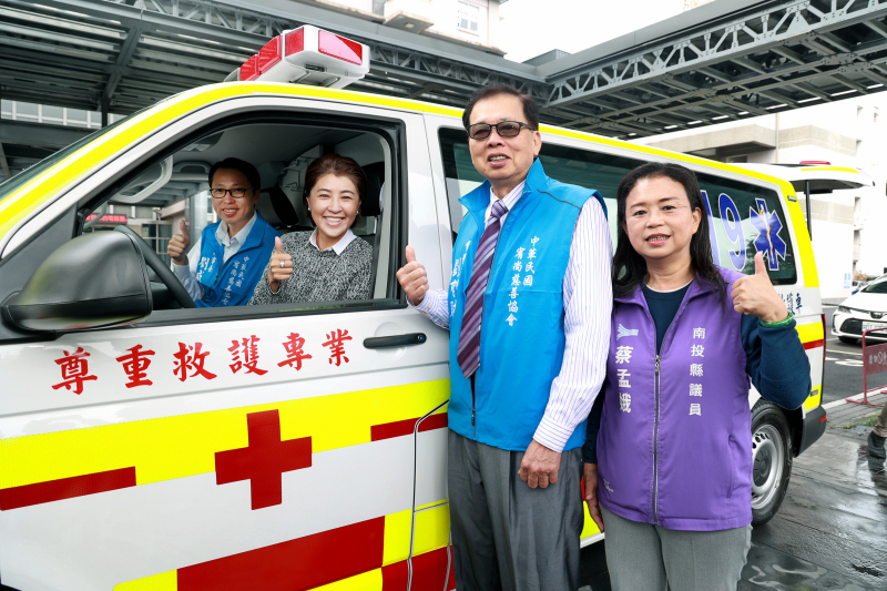 縣議員蔡孟娥也在場表達謝意,她指出南投縣老化人口近25%,救護車對鄉下地區極為重要,這輛頂級配備車輛將大大幫助長者及患者,減輕急難。她肯定協會團隊多為竹山人,對竹山與南投的奉獻,並希望協會從竹山出發,協助更多鄉親。