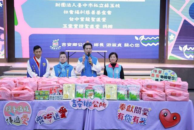 為了讓弱勢家戶感受到社會溫暖關懷,歡喜迎接農曆新年,花蓮縣吉安鄉公所近來鏈結社會各界愛心資源,到位傳送挹注量能。其中,台中豐龍聖道堂、財團法人臺中市私立蘇玉枝社會福利慈善事業基金會、以及玉里豐證聖道堂,發起「地母慈恩傳溫情~冬季愛心物資發放」活動,透過鄉公所媒合,2月7日下午在吉安國小桐心廣場發放687 份物資與百萬金援。這場跨越台中與花蓮兩地的愛心接力,為吉安鄉的弱勢族群送上最實質的援助與祝福。
