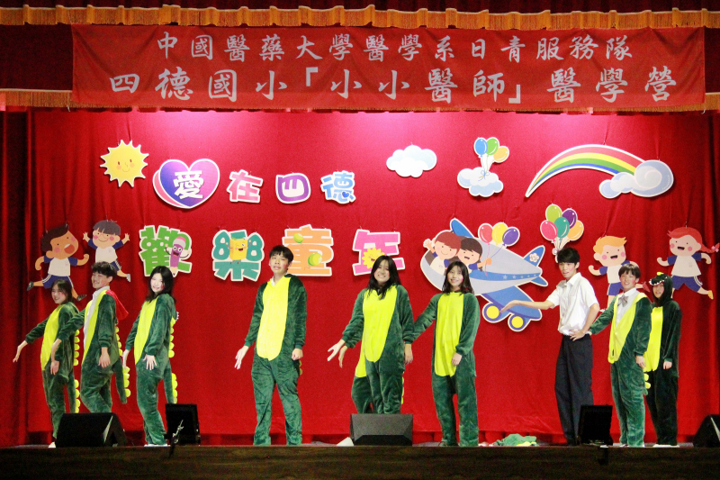 中國醫藥大學醫學系《日青服務隊》寒假出隊到四德國小舉辦「小小醫師營」活動,受到陳世穎校長、學務主任胡瓈友和學生家長們的歡迎,今年吸引120多名學童參與營隊活動,由服務隊總召曾國淨、副總召林瑜珊、副總召韓松儒帶領86位志工同學以己所學,傳遞知識與歡樂,激發學童的興趣與學習熱誠,大學生陪伴小學生豐富有意義寒假生活。