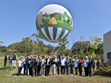 南投氦氣球未昇空,搶先轟動!縣府於11日上午在九九峰舉辦九九峰氦氣球樂園工程啟用典禮暨試營運活動,位於草屯鎮平林里的氦氣球園區,引進法國Aerophile頂級氦氣球,讓遊客可以在穩定、安全的條件下,輕鬆升空。