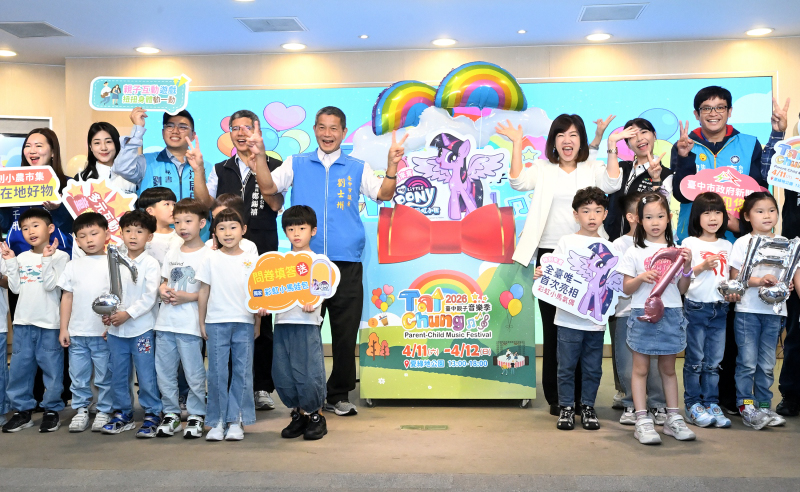 台中市政府新聞局今(1)日舉行記者會,宣布「2026台中親子音樂季」活動開跑。新聞局長欒治誼表示,4月是充滿溫馨與歡樂的月份,適逢兒童節,市府每年都全力以赴舉辦親子音樂季,在市長盧秀燕的鼓勵與支持下,今年活動規模再升級,首度攜手全球知名IP「彩虹小馬」,於4月11日至12日在夏綠地公園打造全台首座5公尺高大型氣偶拍照區,邀請親子合影留念,還有獨家限量小禮可以帶回家。