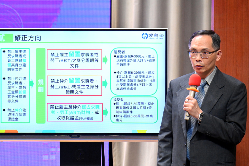 行政院長卓榮泰表示,勞動部此次修正「就業服務法」,明定雇主或仲介在招募、僱用或從事就業服務業務時,不得有留置求職人或員工身分證明相關文件、侵占財物或收取保證金等情事,違者均有相關罰則。本次修法能更確保勞工持有證明文件的自主權,強化勞動權益保障,讓本國勞工朋友及外籍移工更能安心就業。