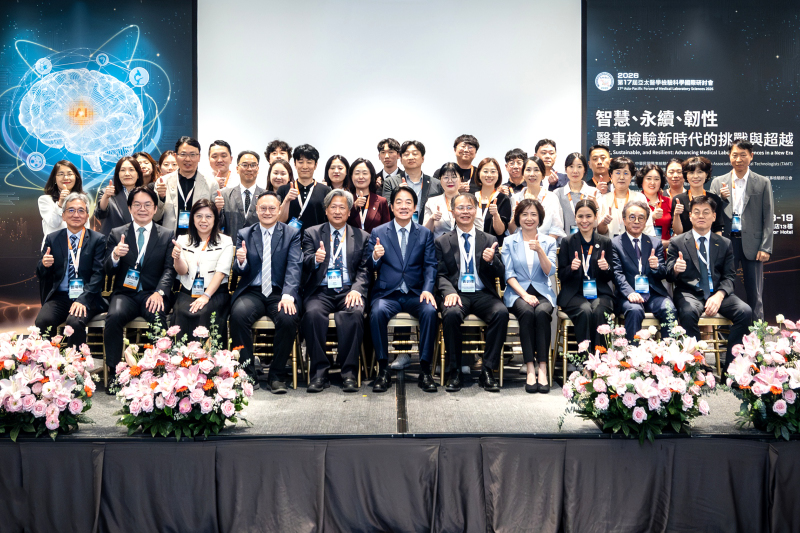 賴清德總統前往臺中出席「2026第17屆亞太醫學檢驗科學國際研討會」開幕式時表示,醫學檢驗就像醫療體系的「眼睛」,不只是診斷流程的一環,更是精準醫療、公共衛生、感染管制及醫療體系的重要支柱。尤其,臺灣面臨超高齡社會、慢性病增加及極端氣候等多重挑戰,政府將透過擴大醫療投資、導入智慧科技,朝「健康臺灣」的目標邁進,期盼進一步提升醫療服務品質,帶動生醫產業持續創新發展,共同守護人民的健康。