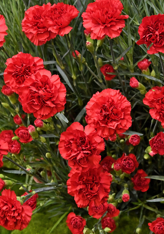 花色涵蓋紅、橙、黃、粉、白、紫及混色等,其中以紅色、粉色及櫻(桃)紅色為市場主流色系。目前花卉批發市場流通品種以中康為主,包括紅(娜娜)、櫻紅(波斯桃)、粉、史波特、紅帶白、紫、紫帶白、黃帶紅及黃帶紫等,約占市場交易量六成以上,供應穩定且價格合理。