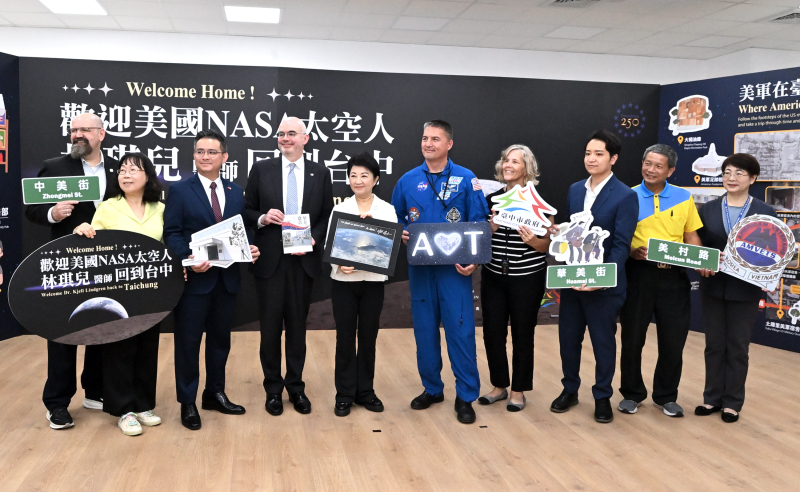 美國首位台裔 NASA 太空人 林琪兒 (Dr. Kjell N. Lindgren) 於 ( 23 )日 回到出生地台中展開參訪行程,由台中市長盧秀燕、 AIT 處長谷立言陪同前往 美村綜合服務園區(原美軍聯勤招待所),並由台中市長盧秀燕親自接待。