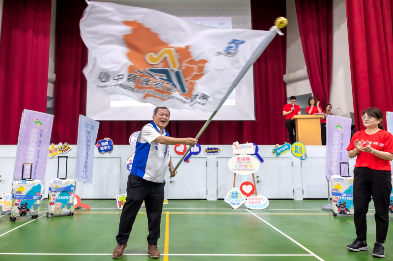 為推動國際教育,南投縣府自113年起補助縣籍學生出國學習,成果卓著。今年首次開拓歐洲學校,「2026年南投縣師生赴法國里昂國際文化交流教育訪問團」授旗儀式26日下午在營北國中樂活館舉行,副縣長王瑞德主持,並代表縣長許淑華祝福參與師生都能拓展國際視野、帶回豐富成果,將所見所學轉化為學習成長的養分。