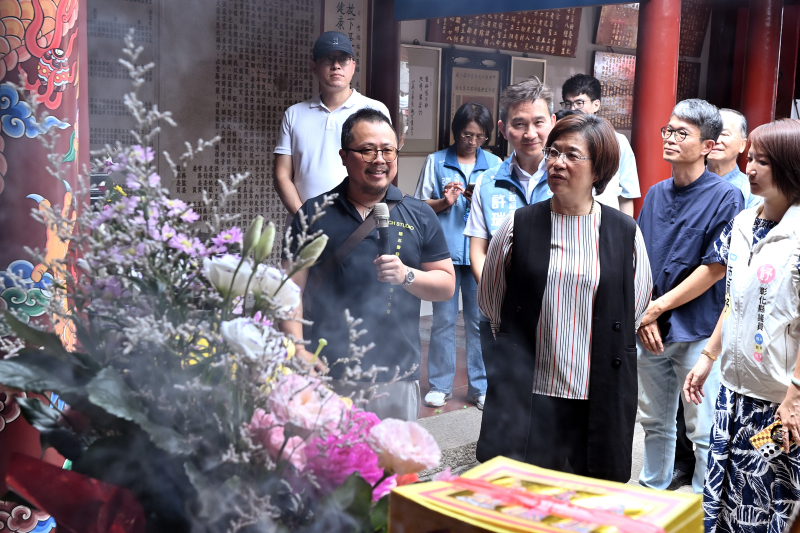 縣議員凃淑媚議員代表致詞,感謝大家這幾年來的努力,不管是中央、縣府還是議會,都全力支持古蹟修護,從一開始脫落斑駁的狀態,經文史工作者的專業修護,才漸漸呈現出今天的樣貌,可說是為地藏王廟上新妝。