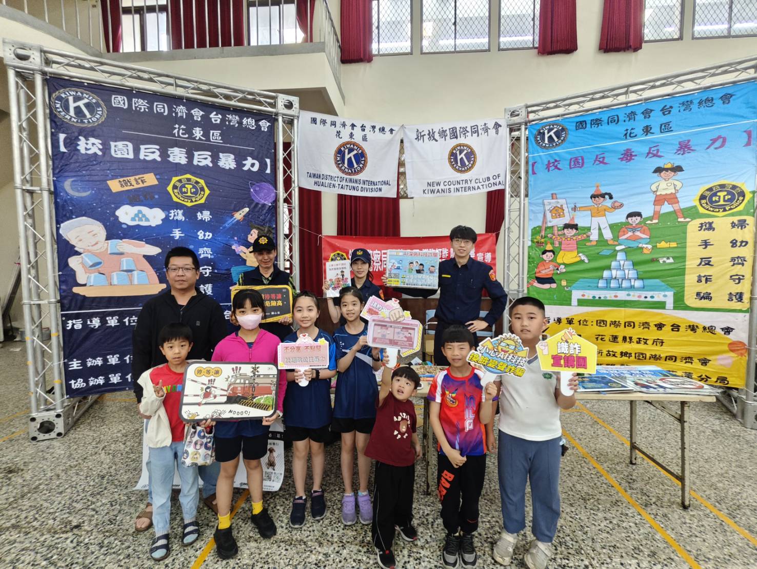 鐵路警察局花蓮分局今日與國際同濟會台灣總會花東區新故鄉同濟會,於花蓮縣明義國小舉辦疊杯競賽活動,富有趣味性和挑戰性的疊杯活動,能幫助手腦協調、促進思考亦能增加專注力與反應力,讓民眾面對層出不窮的詐騙手法,一秒識破陷阱。本分局現場手持標語、告示牌,以有獎徵答方式發放精美實用宣導品,向家長及學生宣導防詐要領「不接、不聽、不看、不傳、不信」,結合「打詐儀表板」QRCODE,推廣實用的防詐APP,強化防範意識,並宣導「百斬車手獎五萬,號召全民斬手」專案活動,鼓勵大家從「被動防衛」轉變成「主動出擊」,共同打擊詐騙。