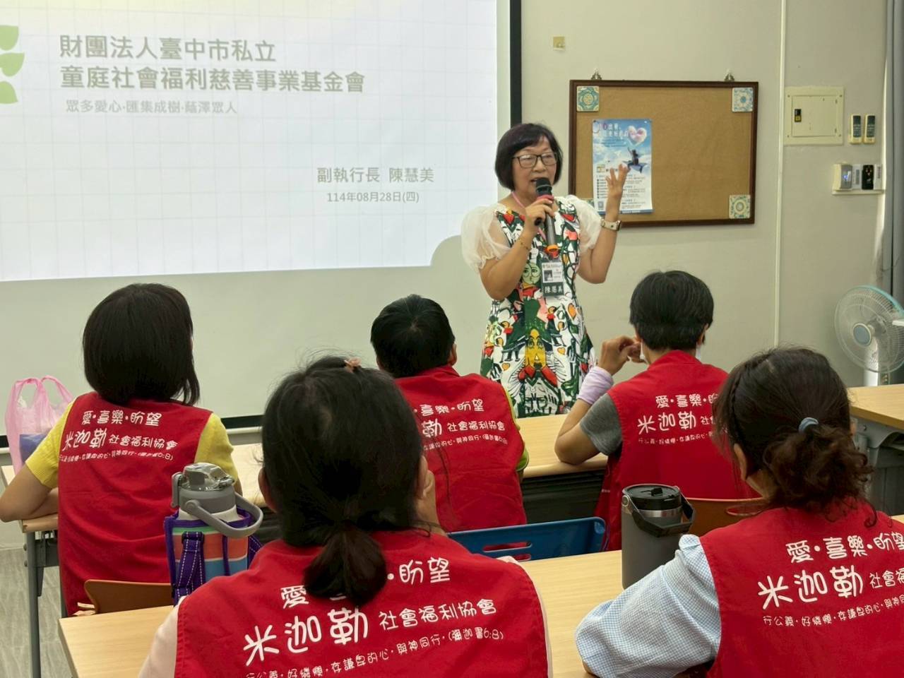 高雄的米迦勒執行長時令瑤帶領工作人員團隊,前往臺中童庭基金會參訪,並受到副執行長陳慧美的接待與介紹。童庭基金會致力於服務長輩,利用許多志工的協助,安排不同時段的課程,讓長輩有更多的選擇進行學習。