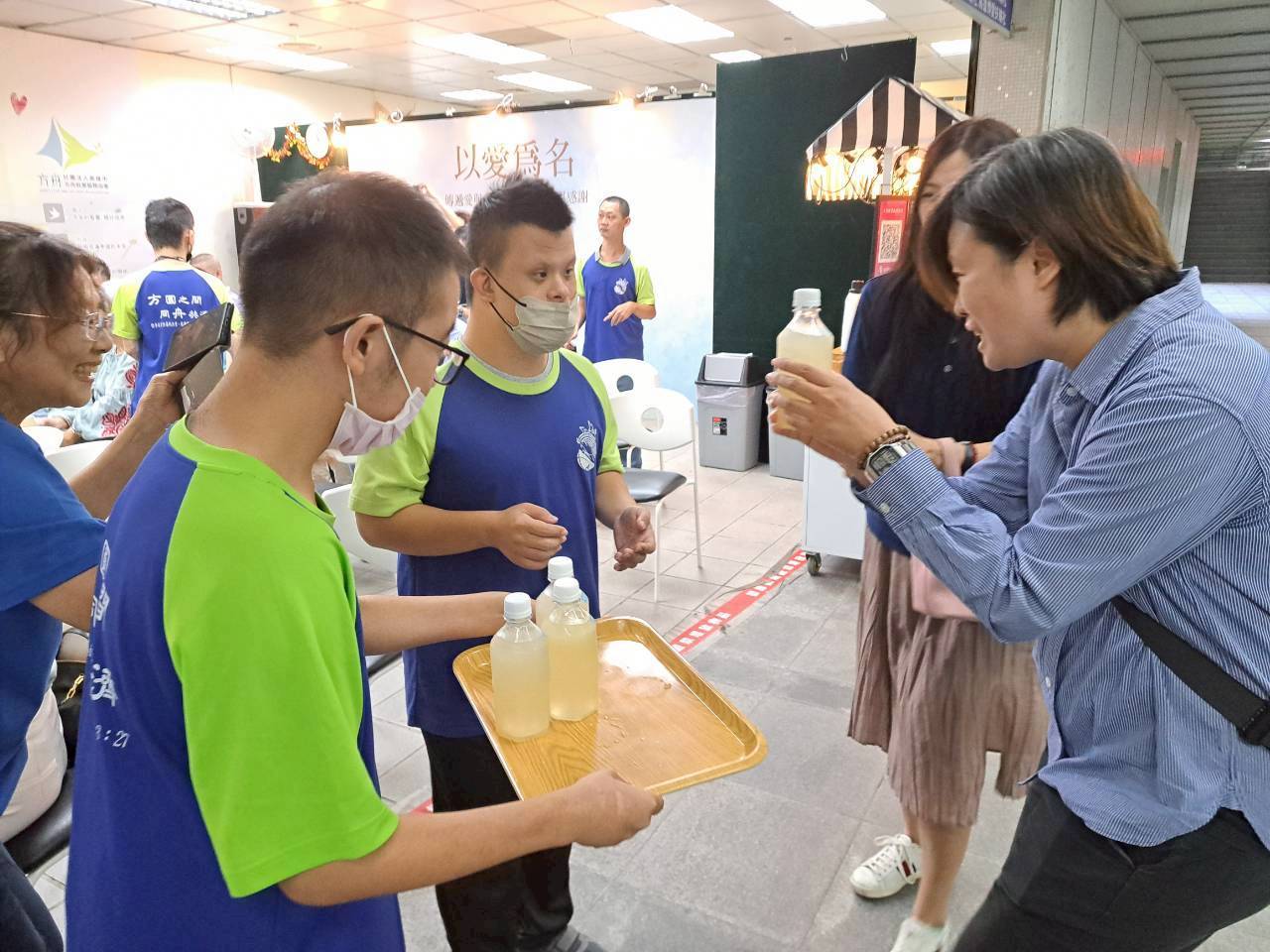 小兒麻痺且中高齡的阿忠師,透過訓練後,在文創攤位販賣自己製作的手工皂、清潔劑商品。同樣也是小兒麻痺的黃小姐則是在訓練後,自己成立了手沖咖啡攤。