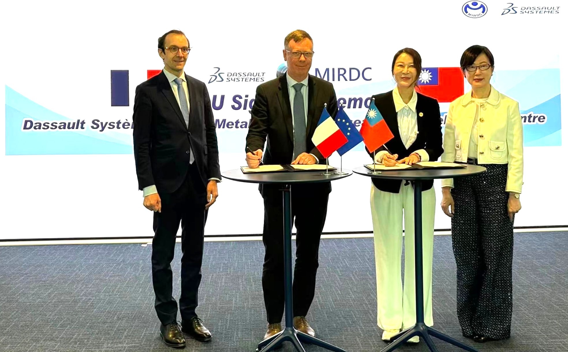 達梭系統(Dassault Systèmes)(巴黎泛歐證券交易所:FR0014003TT8, DSY.PA)宣布與金屬工業研究發展中心(MIRDC)簽署合作備忘錄(MOU),由達梭系統SIMULIA銷售暨市場行銷副總裁Sebastien Gautier與金屬中心董事長劉嘉茹共同簽署,駐法國台北代表處大使郝培芝出席見證,展現政府對臺法技術合作的高度重視。